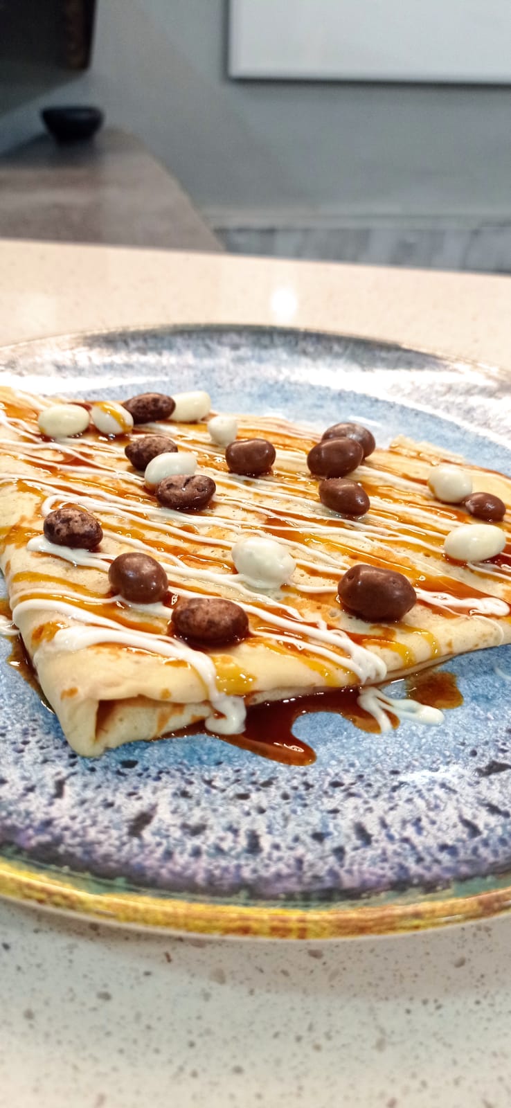 Topping 1 (salsa): nocciola, chocolate blanco, dulce de leche, caramelo salado, pistacho dubai, mermelada (albaricoque). Topping 2 (galleta): cacahuete tres chocolate, galleta crumbs, lotus.